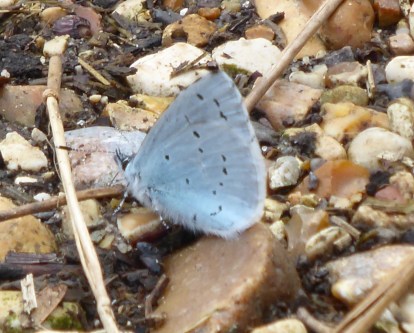 Blue came to rest on the gravel path next to