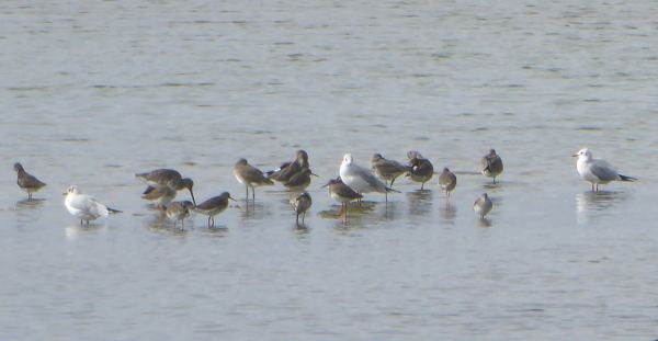 Greenshank, 14 Dunlin, a Black-tailed Godwit and 160+