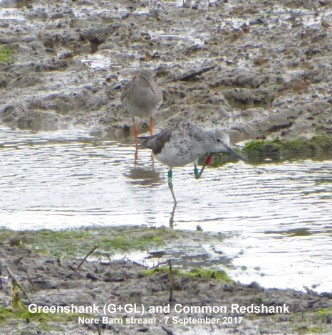 Black-tailed Godwits, 95 Redshank, 7 Greenshank, 9