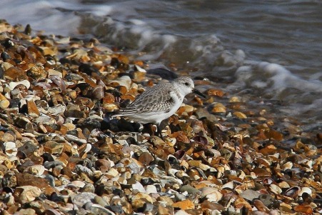 the salt marsh, distant), 120+ Dunlin, 4 Grey