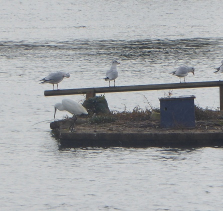Herring Gull on the centre raft and a Little Egret on