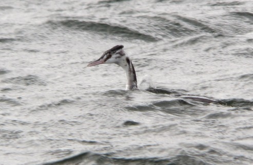 Crested Grebe, 18 Turnstone roosting on the buoys and