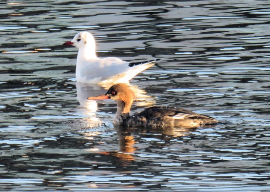 1 Bar-tailed Godwit, 7 Red Breasted Merganser, 2 Great