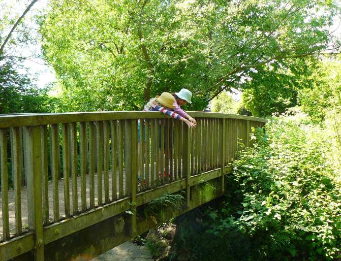 playing Pooh sticks from the bridge on Brook