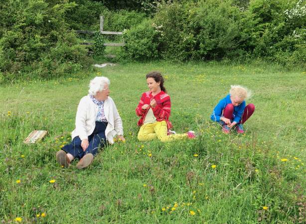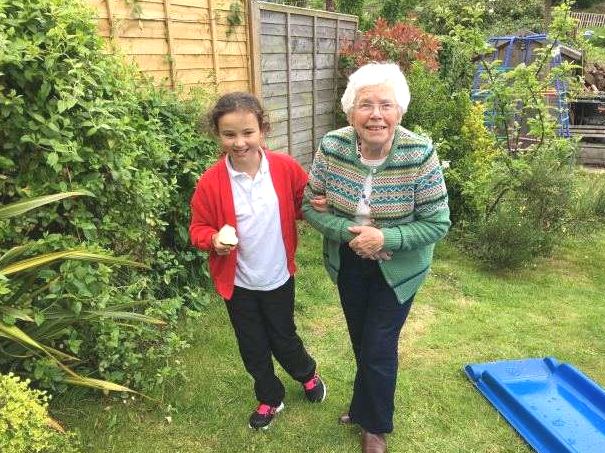 Grandma a helping hand up the garden