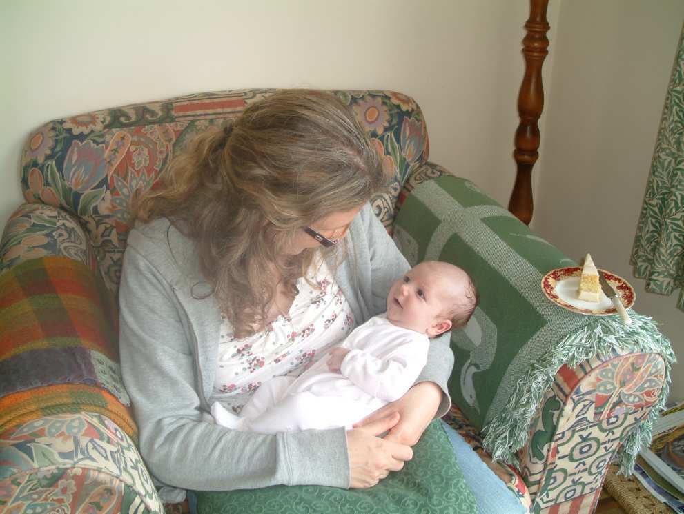 getting a welcome feed from her Mum -