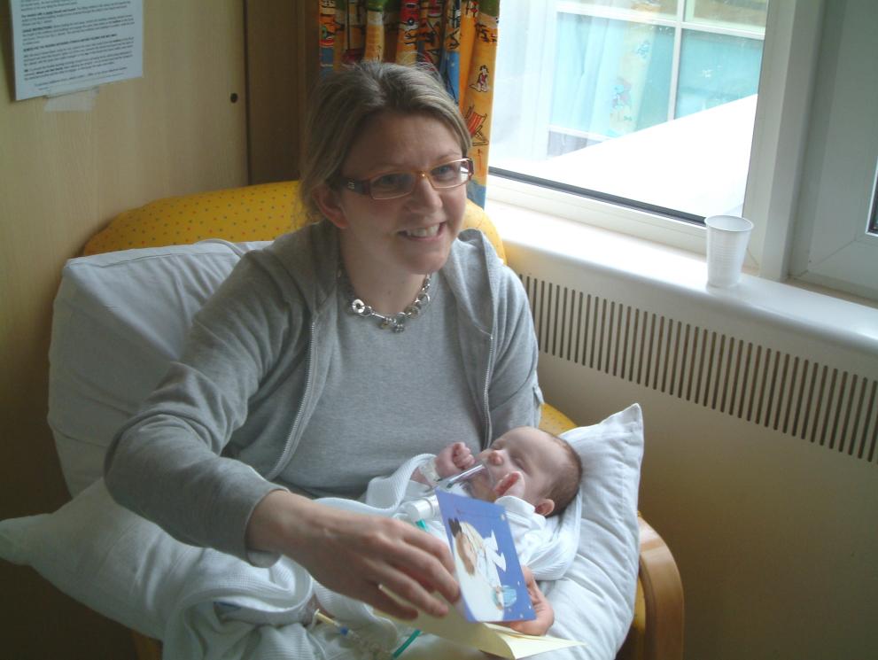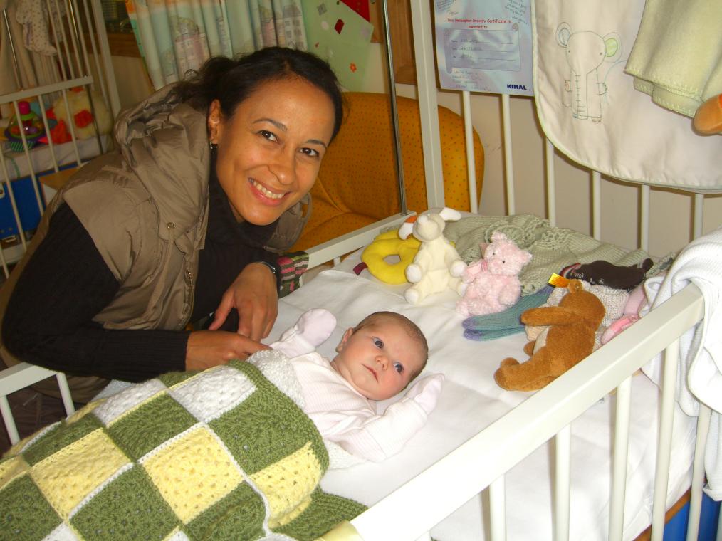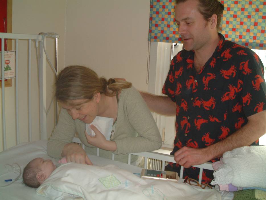 with her proud Mum and Dad in the Pedriatric Cardiac Unit