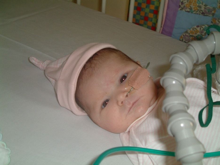 tubes in her mouth for food and oxygen.