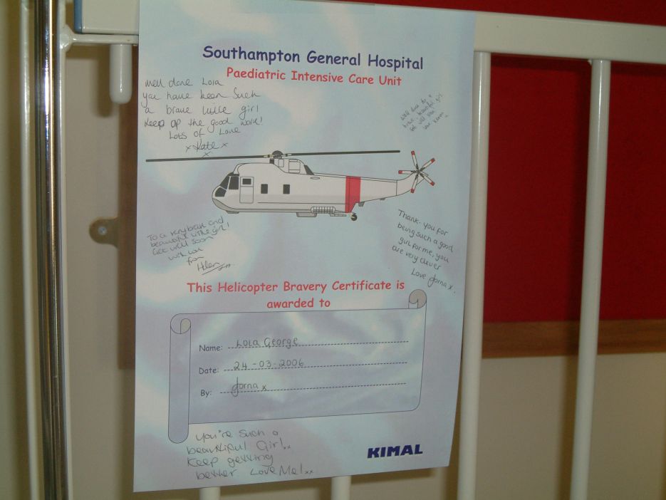 Here is a photo of Lola in intensive care at Southampton
